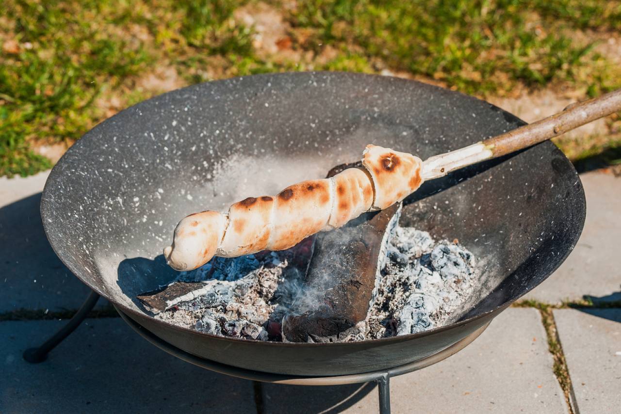 ドイツでは、学校や幼稚園のキャンプや遠足、子供の誕生日会などの行事でよく見かけ、森に落ちている長い枝などに、手作りのパン生地や、手軽にスーパーで売っているピザ用の生地などを巻き付けて炙ります。生地の中にチーズやハムを入れたり、食べ方も色々。