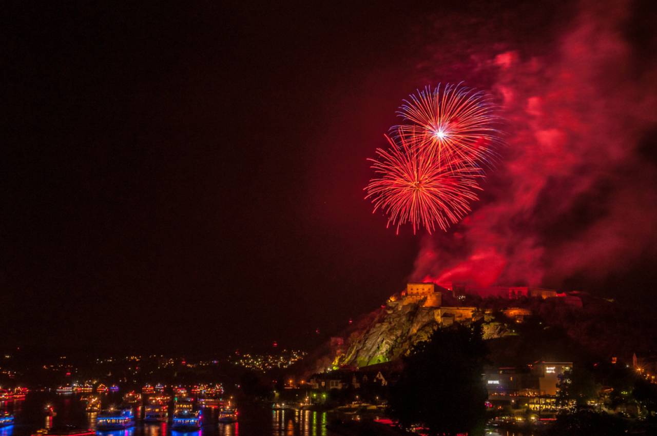 ライン川沿いの古城がライアップされ、赤い炎(Flammen)のような盛大な花火が打ち上げられる大規模なイベントです。