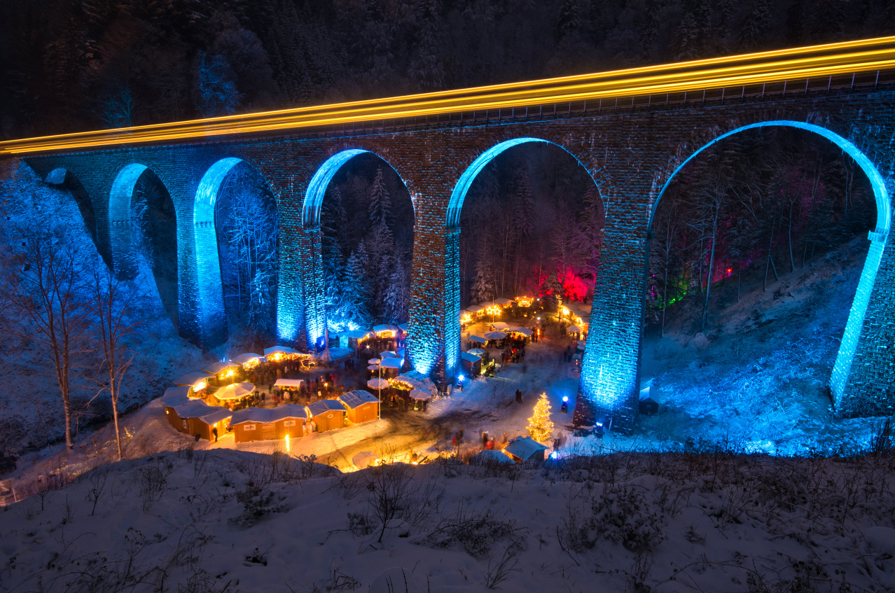 ホテルにて朝食後、チェックアウト 鉄道にてフライブルクへ(各自)*鉄道パス利用 *所要時間:約40分~1時間 / 直通 ご自由にクリスマスマーケットや市内散策をお楽しみください。 午後:指定場所にて日本語ガイドと合流します。 日本語ガイドが公共交通機関&シャトルバスにてラヴェンナ渓谷のクリスマスマーケットへご案内いたします。 *ラヴェンナ渓谷のクリスマスマーケットへ日帰り観光* (日本語ガイド付き / 公共交通機関&シャトルバス利用)