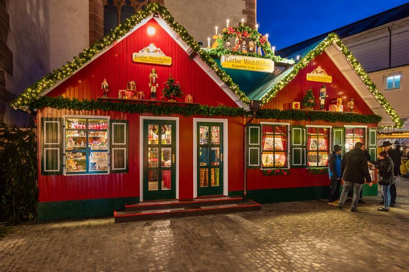 ② シュトゥットガルトのクリスマスマーケット *所要時間:約1時間30分 / 直通あり 開催:2025年11月26日~12月23日 「ニュルンベルク・ドレスデン・シュトゥットガルト」はドイツ3大クリスマスマーケットとして知られています。シュトゥットガルトのクリスマスマーケットは個性的な屋根飾りが有名で、それぞれの屋台が毎年趣向を凝らして訪れる人を楽しませています。 ③ ローテンブルクのクリスマスマーケット *所要時間:約3時間30分 / 2回乗り換え 開催:2025年11月21日~12月23日